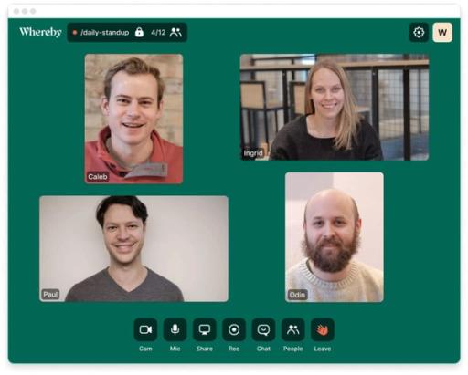 Der vil hun (naturligvis) trekke fram Whereby som en god plattform – i tillegg finnes Skype, Zoom og Cisco Webex. I forbindelse med covid-19-pandemien har sistnevnte til og med gjort en rekke premium-funksjoner tilgjengelig for gratisbrukere.