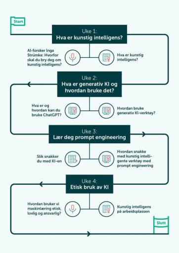 🏆 Passer for: Ledere og ansatte som ønsker å forstå mer og komme i gang med utforsking og ansvarlig bruk av kunstig intelligens. Ingen forkunnskaper kreves.